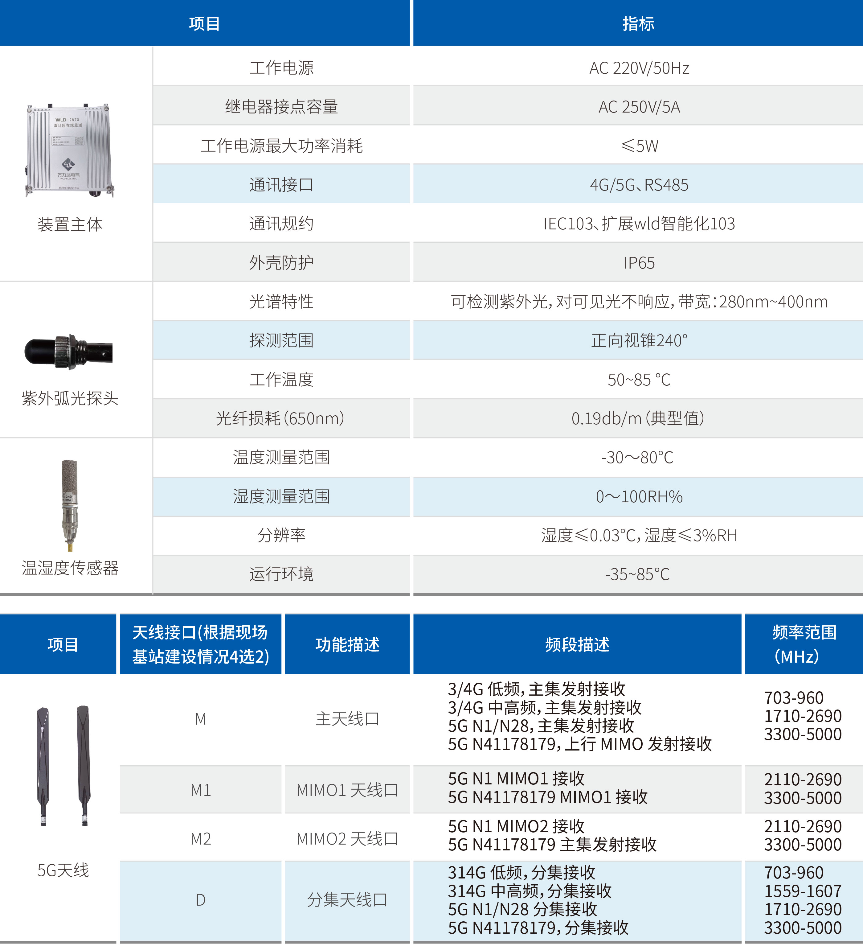 滑環(huán)箱在線(xiàn)監測裝置主要用于高壓繞線(xiàn)電機滑環(huán)監測。采用三路弧光傳感器一路溫濕度傳感器,從多維度監測滑環(huán)箱內部環(huán)境及滑環(huán)放電。同時(shí)具有4G、5G、RS485通訊等豐富的對外通訊方式。