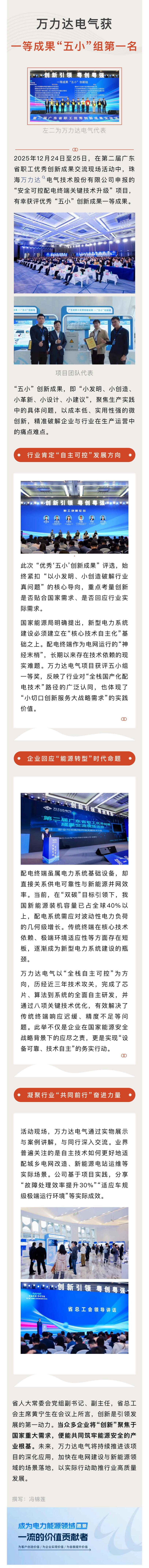 萬(wàn)力達電氣獲省級“五小”創(chuàng )新一等成果 ——以技術(shù)創(chuàng )新筑牢能源安全根基