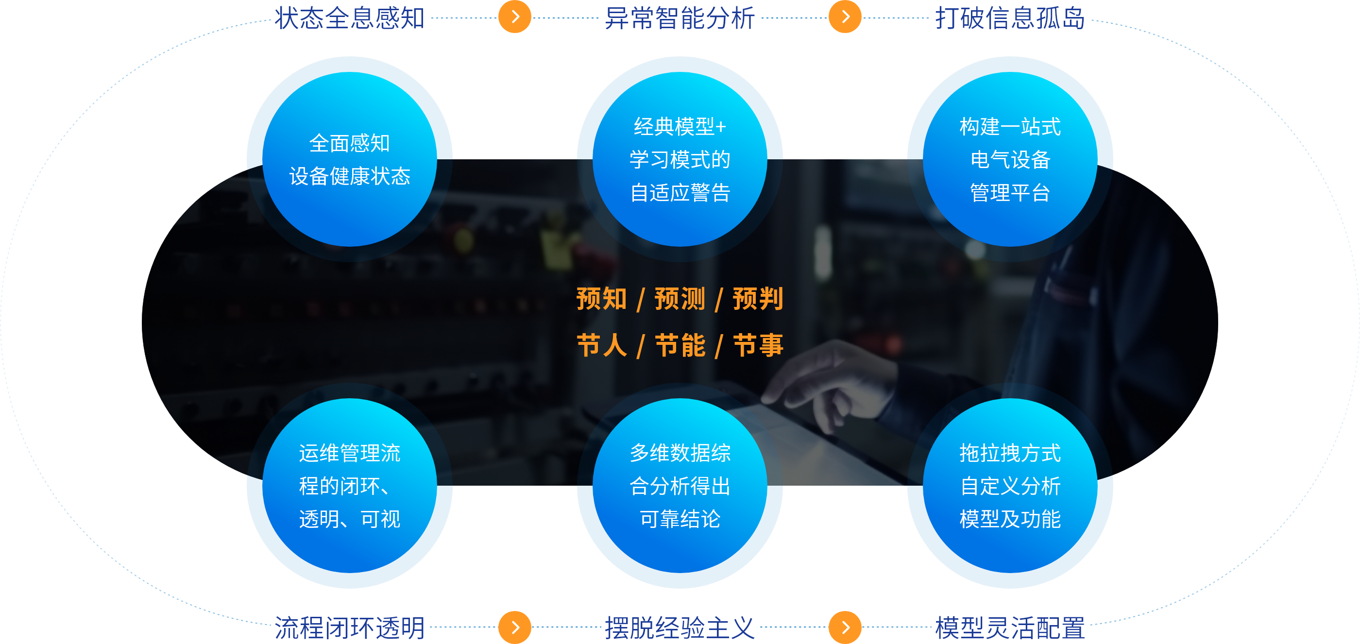 三大業(yè)務(wù)核心構建的系統,主要服務(wù)于工業(yè)企業(yè)的電氣運維及管理人員,通過(guò)對電氣設備狀態(tài)的預知、預測、預判,實(shí)現